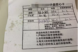 Take-out card outside a hotel room (recoding the temperatures of the cook and the deliveryman)